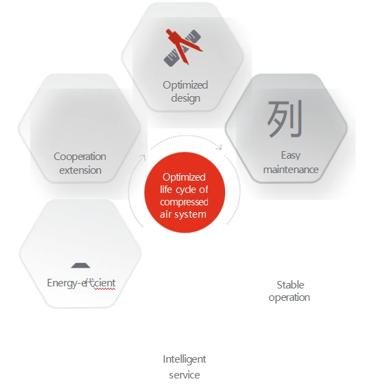 ہمارا آئل فری سکرو ایئر کمپریسرز سسٹم خاص طور پر 46 ° C پر کام کرنے کے لئے ڈیزائن کیا گیا ہے ، جو زیادہ تر ڈیزائنوں سے بہتر ہے جو صرف 40 ° C پر موزوں ہے۔