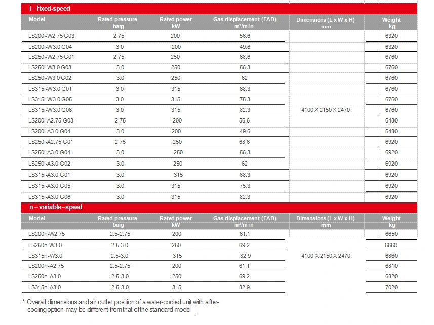 ایل ایس سیریز کم پریشر آئل فری سکرو ایئر کمپریسر 200-315KW